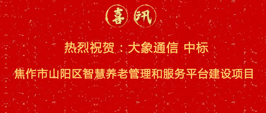 中標(biāo)喜訊 | 熱烈祝賀:大象通信中標(biāo)焦作市山陽(yáng)區(qū)智慧養(yǎng)老管理和服務(wù)平臺(tái)建設(shè)項(xiàng)目